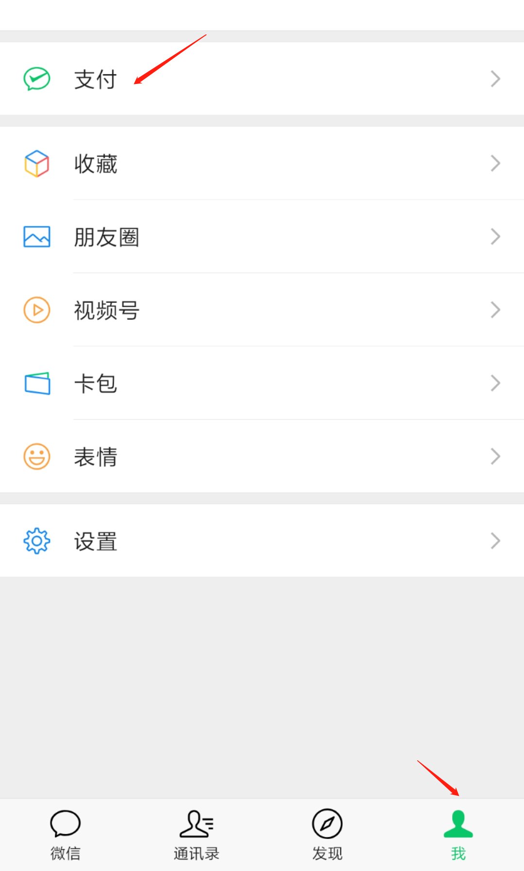 第一步:进入微信后,点击底部的【我】后选择【支付】。
