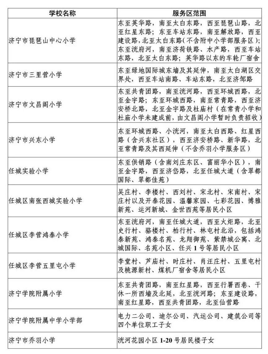济宁任城区小学片区划分 济宁任城区实验小学学区划分