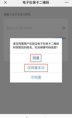 电子社保卡——卡面服务——进行验证(可选择同意或仅同意本次)——输入密码验证——电子社保卡二维码
