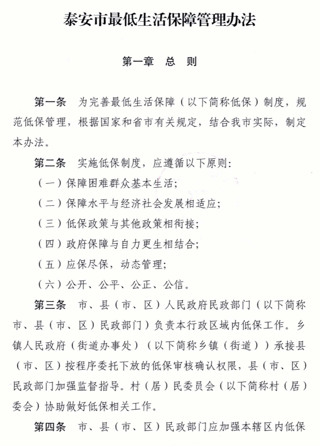 泰安市最低生活保障管理办法 泰安市最低生活保障管理办法实施细则