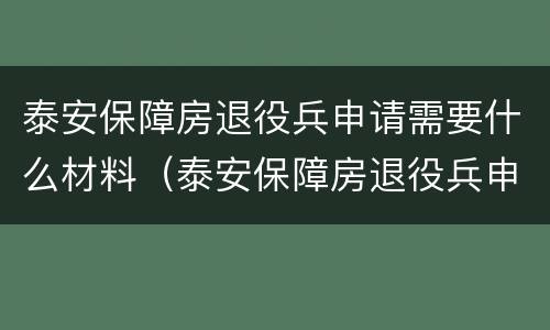 泰安经济适用房申报需要什么条件(泰安申请经济适用房需要什么条件)